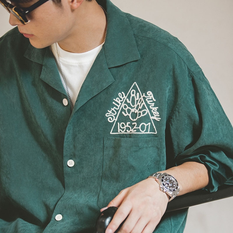 W2007134 Men Vintage Bowling Cuban Collar Shirt Brushed Loose Bottoming Shirt