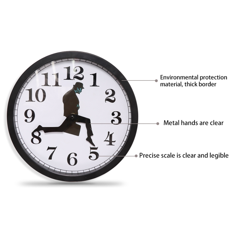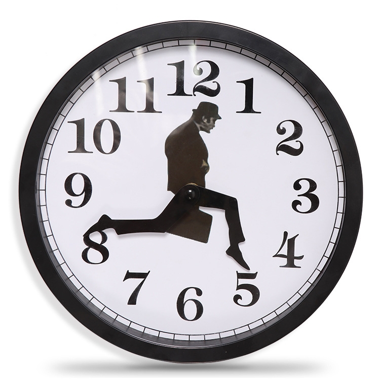 Walking Clock Businessman Briefcase Glass Wall Clock Personality Clock Decoration Round Clock, White, Black