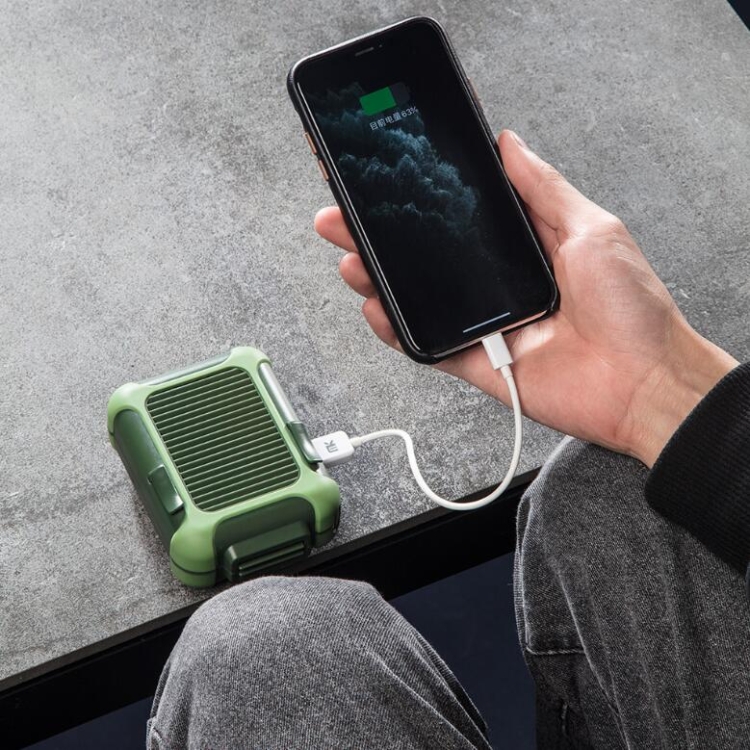 6. Features: unique shape, beautiful and practical, light and portable, can be hung on the neck and waist, adjustable three-speed wind speed, adjustable left and right 30 degrees wind direction, can be used as emergency mobile power, shock absorption