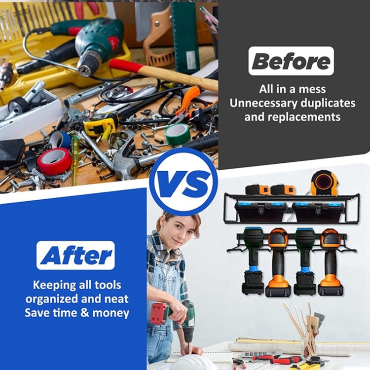 4. With extra storage space, it is specially designed for power tools and various small parts, and has a wall-mounted design