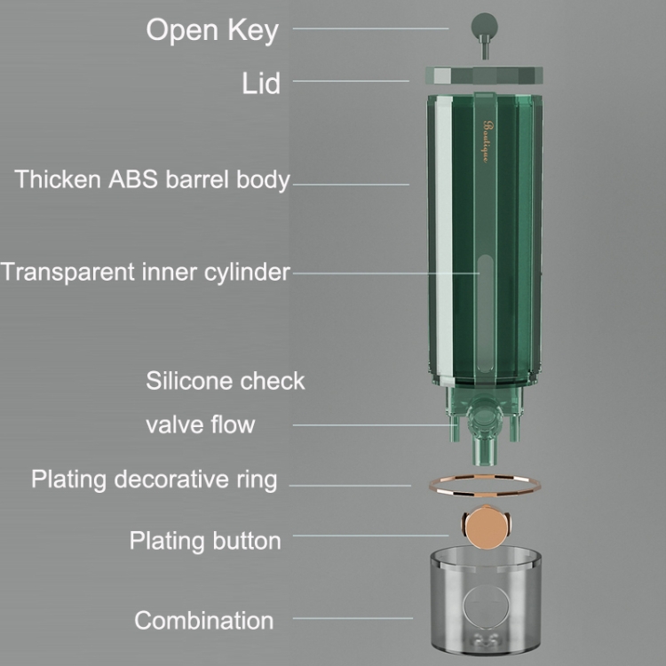 4. Thicken ABS barrel body, transparent inner cylinder, silicone check valve flow, plating decorative ring, plating button