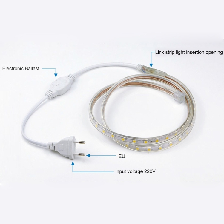 Waterproof IP65 SMD 5730 LED Light with Power Plug, 120 LED/m, AC 220V