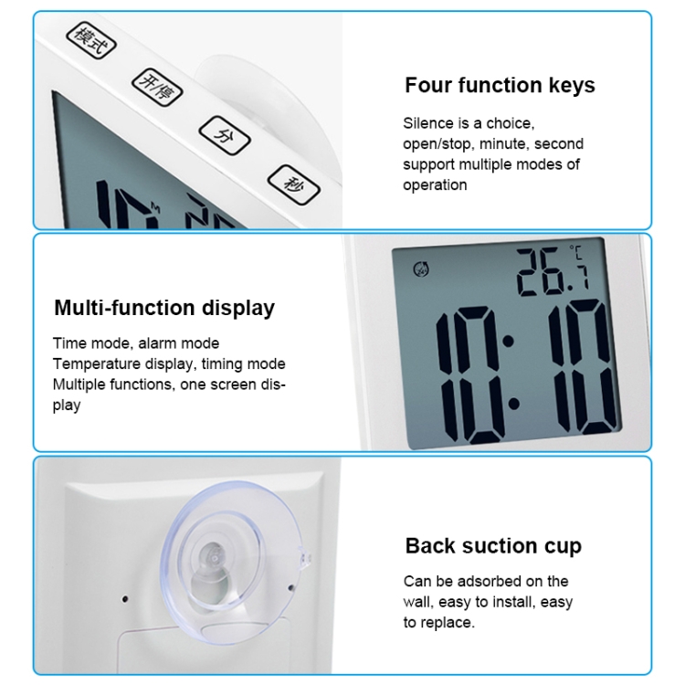 Waterproof Wall Clock LCD Bathroom Clock Kitchen Electronic Alarm Clock