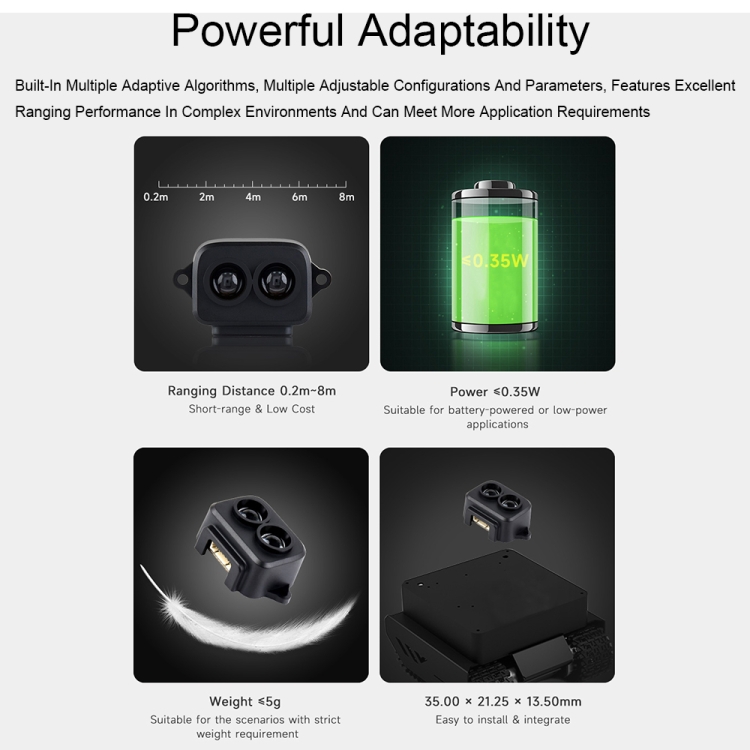 2. Built-in a variety of adaptive algorithms, a variety of adjustable configurations and parameters, has excellent ranging performance in complex environments, and can meet more application requirements