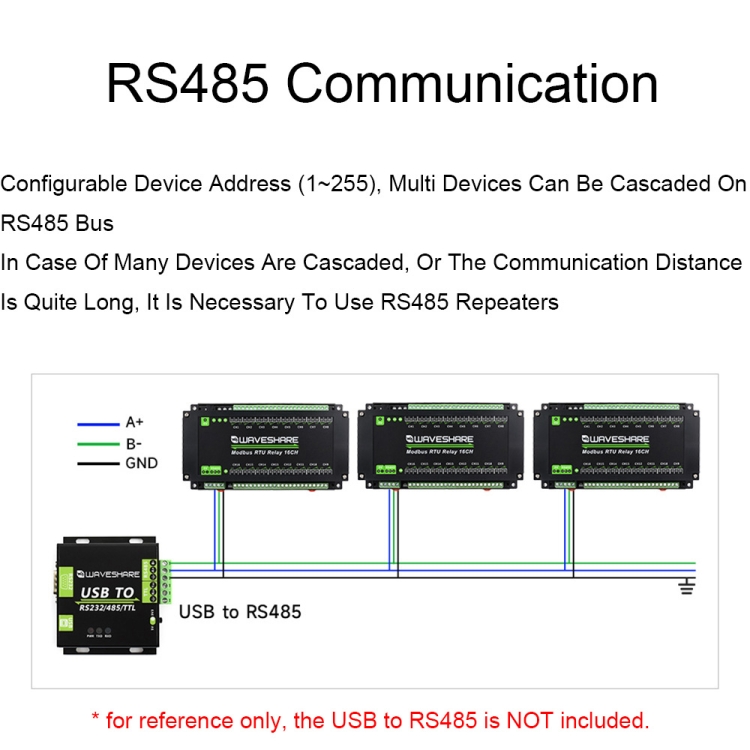 Waveshare 24921 Modbus RTU 16-Ch Relay Module, RS485 Interface, With Multiple Isolation Protection Circuits