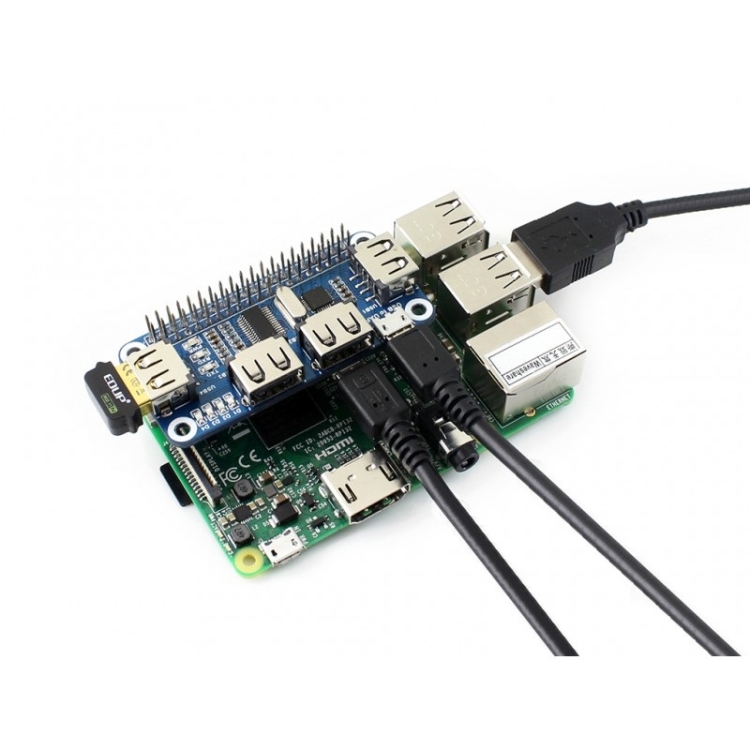 1. This is a 4 port USB hub for Raspberry Pi, provides more USB capability to your Pi, whats more, it features USB to UART converter for easy serial communication.