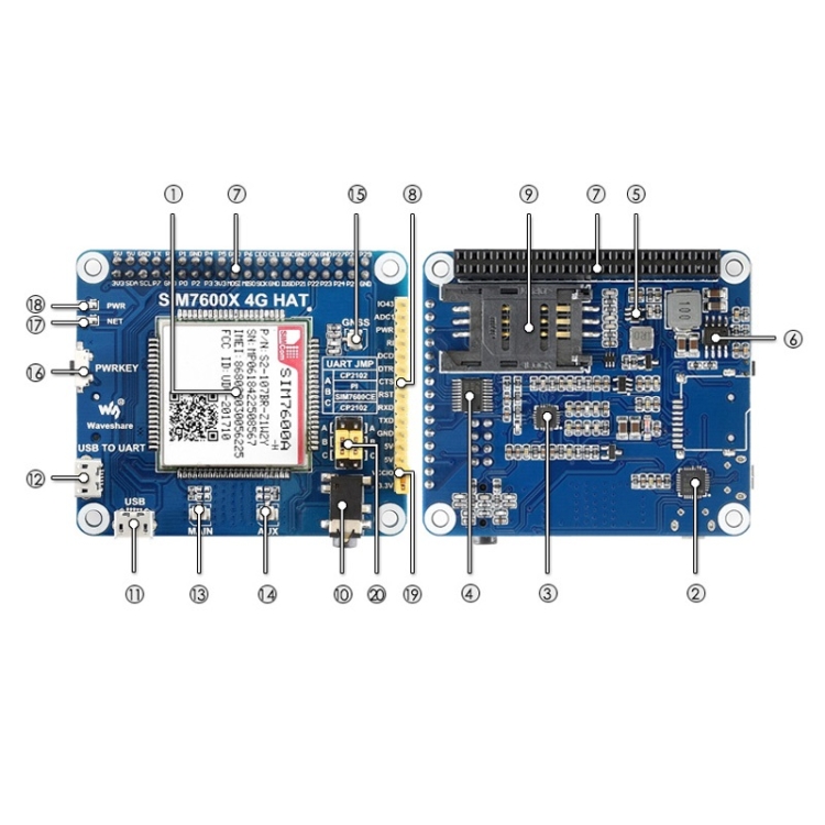 4G/3G/GNSS HAT for Raspberry Pi, Based on SIM7600A-H