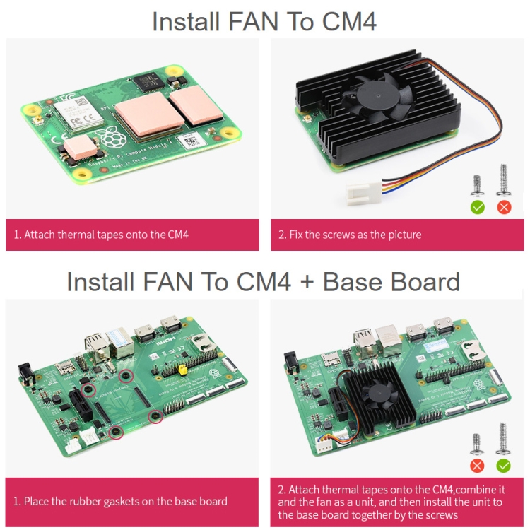 Waveshare Dedicated All-in-One 3007 Cooling Fan for Raspberry Pi CM4, Speed Adjustable, with Thermal Tapes