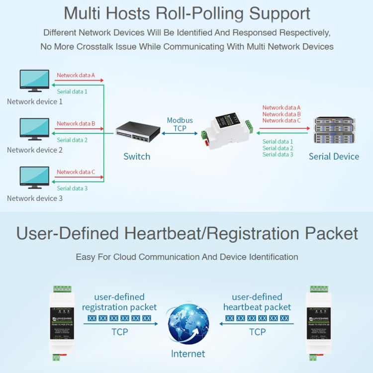 12. Multi-host rolling polling support, easy for cloud communication and device identification.