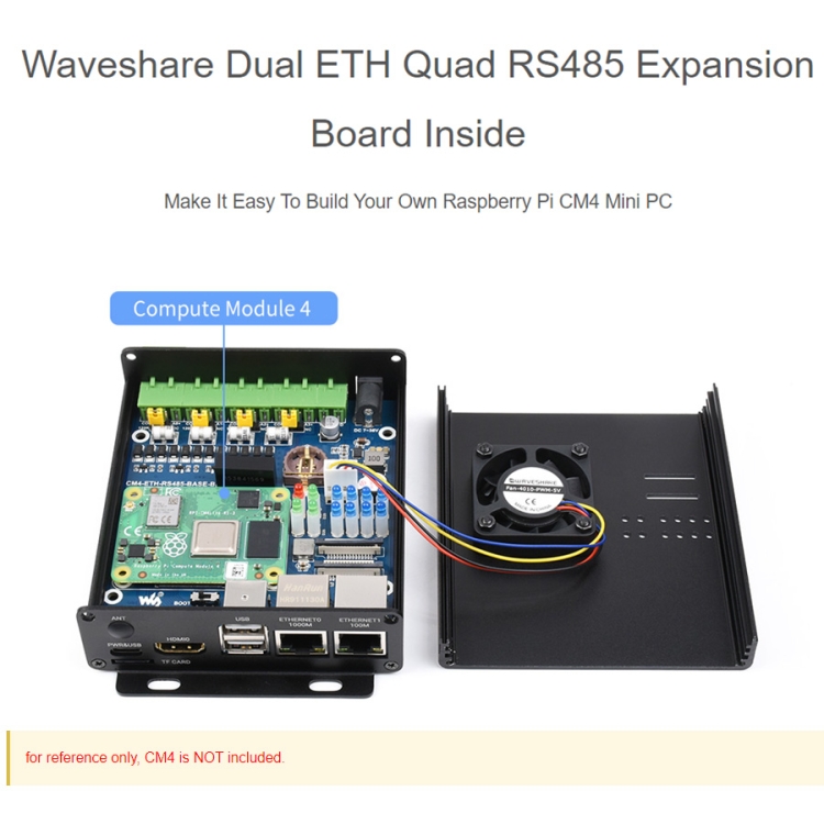 Waveshare Dual ETH Mini-Computer for Raspberry Pi CM4, Gigabit Ethernet, 4CH Isolated RS485