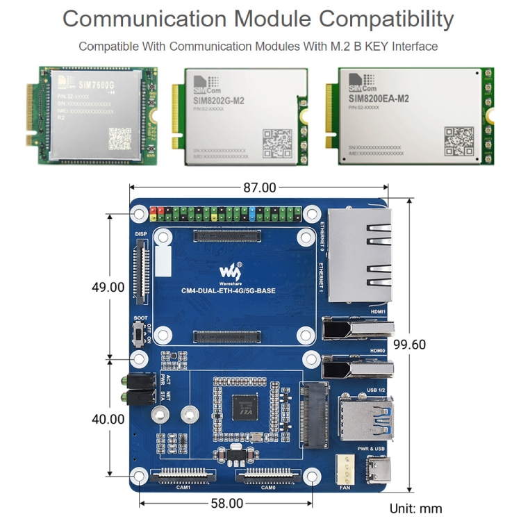 Waveshare Dual Gigabit Ethernet 5G / 4G Base Board for Raspberry Pi CM4