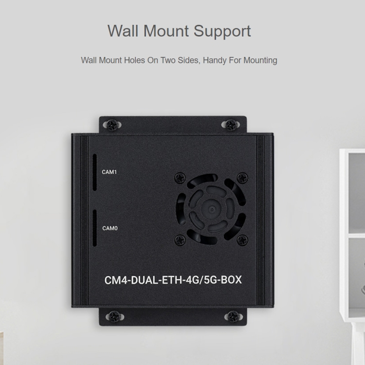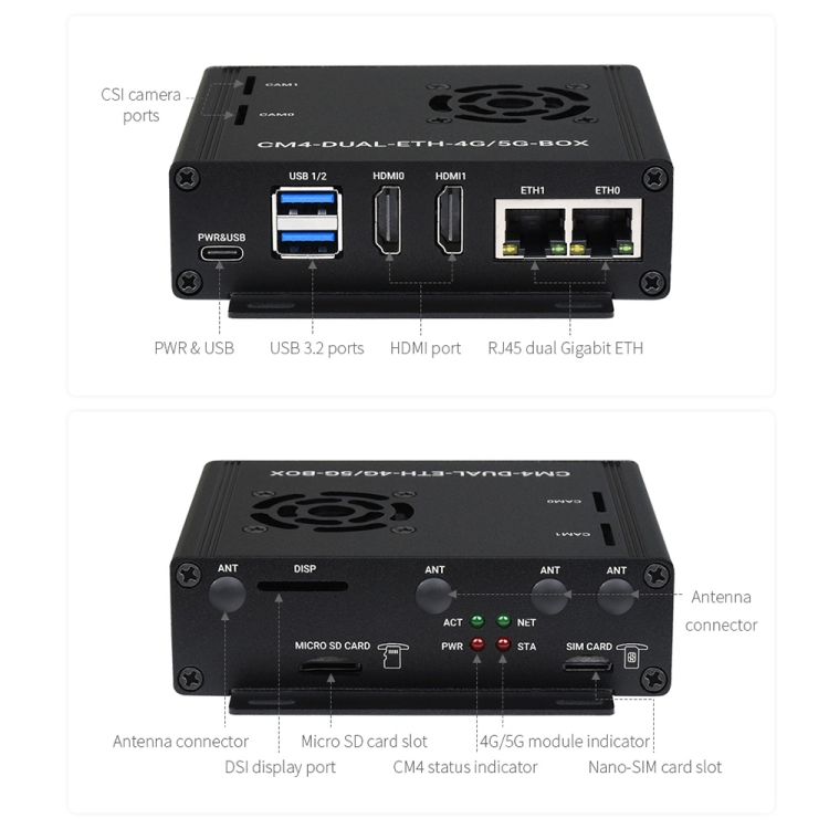 Waveshare Dual Gigabit Ethernet 5G/4G Computer Box with Cooling Fan for Raspberry Pi CM4