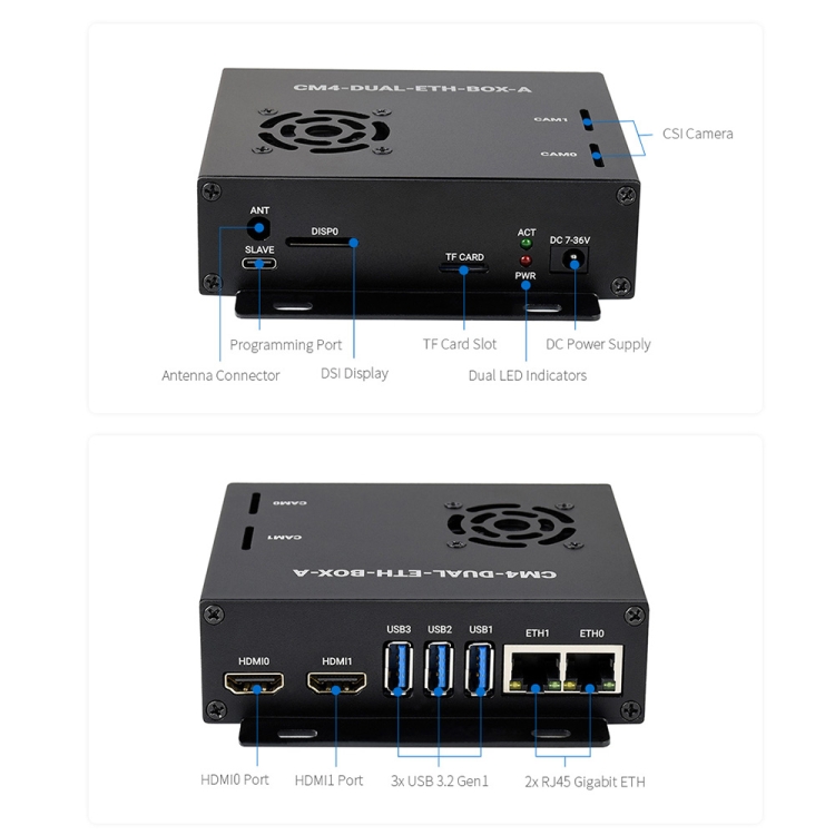 Waveshare Dual Gigabit Ethernet Mini-Computer with Metal Case & Cooling Fan for Raspberry Pi CM4