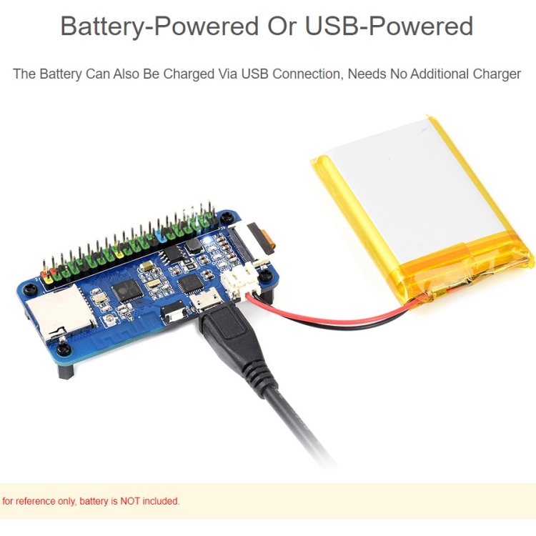 3. Integrated Li-ion battery boost charging manager, supports battery charging/discharging, can also be powered from USB connection