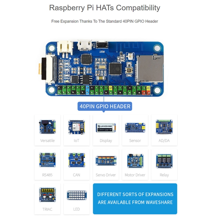 2. Standard 40PIN GPIO header, compatible with Raspberry Pi HATs for sorts of IoT applications