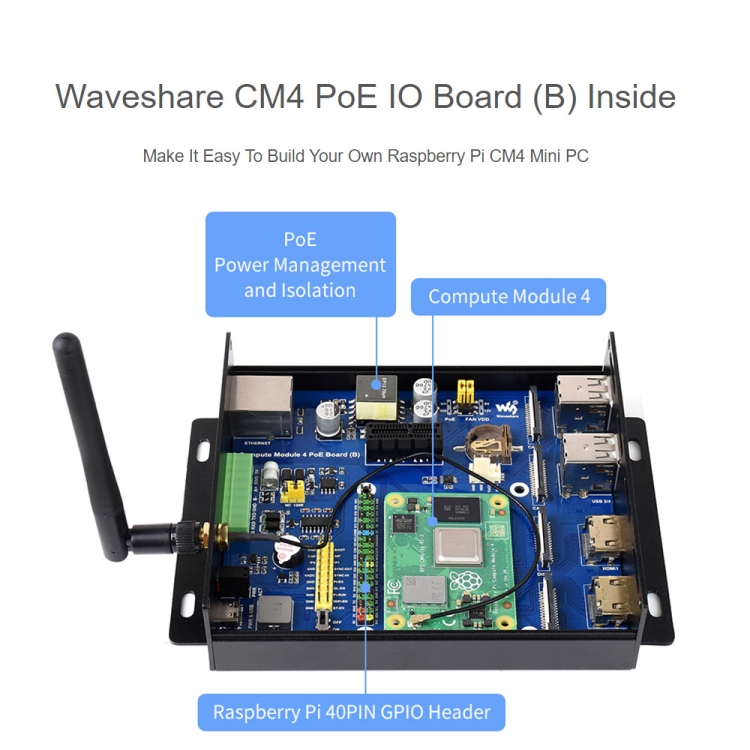 Waveshare PoE Mini-Computer Type B Base Box with Metal Case & Cooling Fan for Raspberry Pi CM4