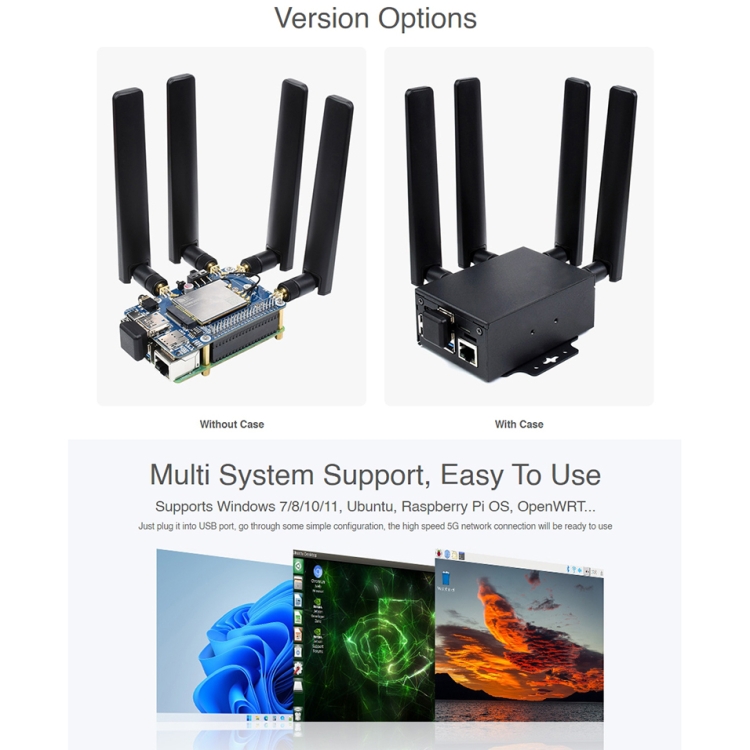 5. Standard M.2 B KEY slot, compatible with different 5G modules: SIM8202X-M2 / SIM8200EA-M2 / SIM8262X-M2 series