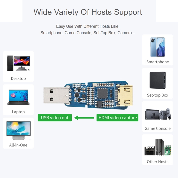 Waveshare USB Port High Definition HDMI Video Capture Card for Gaming / Streaming / Cameras