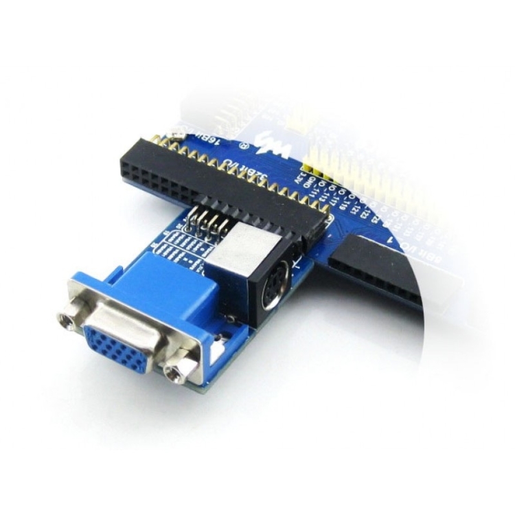 The VGA PS2 Board is an accessory board designed for testing VGA and/or PS2 interfaces. It integrates VGA connector, PS2 connector, and control interface in one small module.