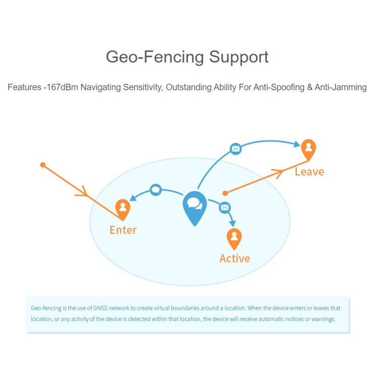 7. Features -167dBm navigating sensitivity and outstanding ability for anti-spoofing & anti-jamming, supports geo-fencing