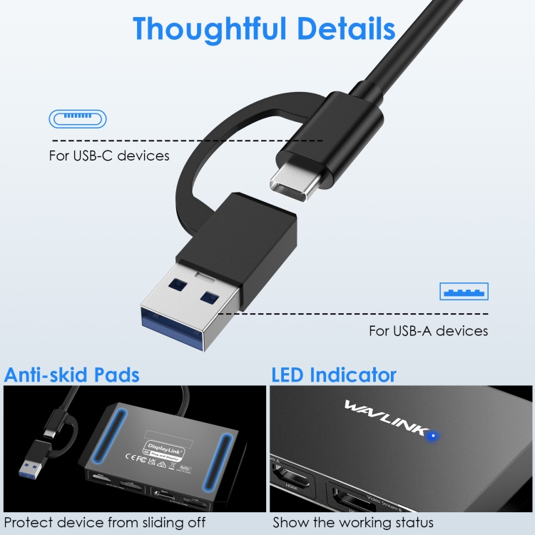 WAVLINK WL-UG69DH2 Dual Monitor USB+Type-C to Dual 4K HD DisplayPort Adapter Splitter