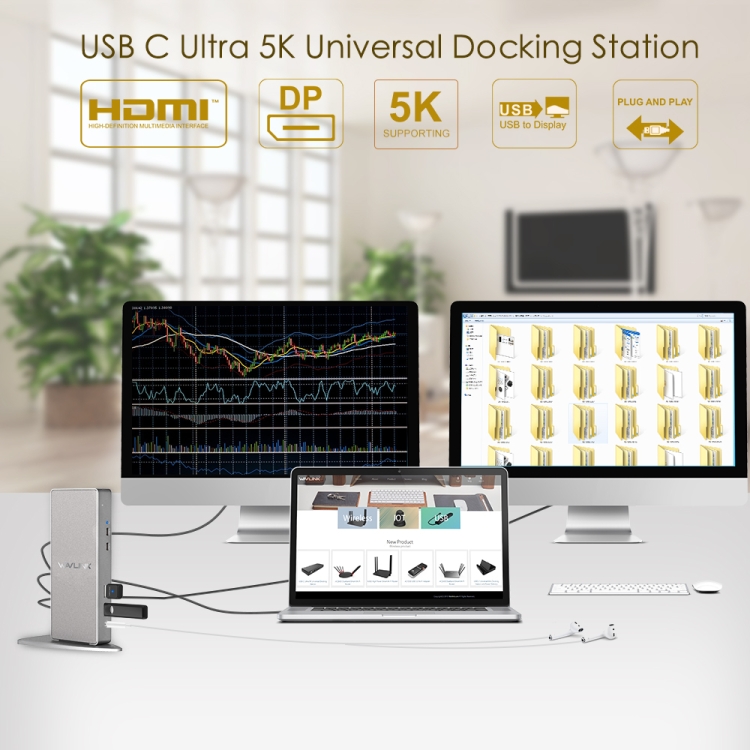 WAVLINK WL-UG69DK7 Laptops Type-C Universal Desktop Docking Station Aluminum Alloy HUB Adapter
