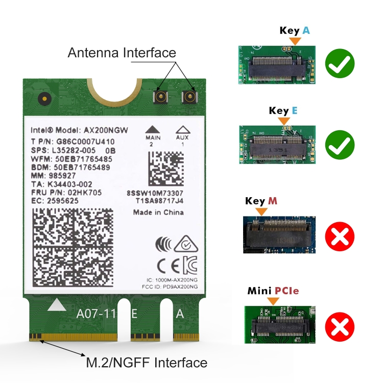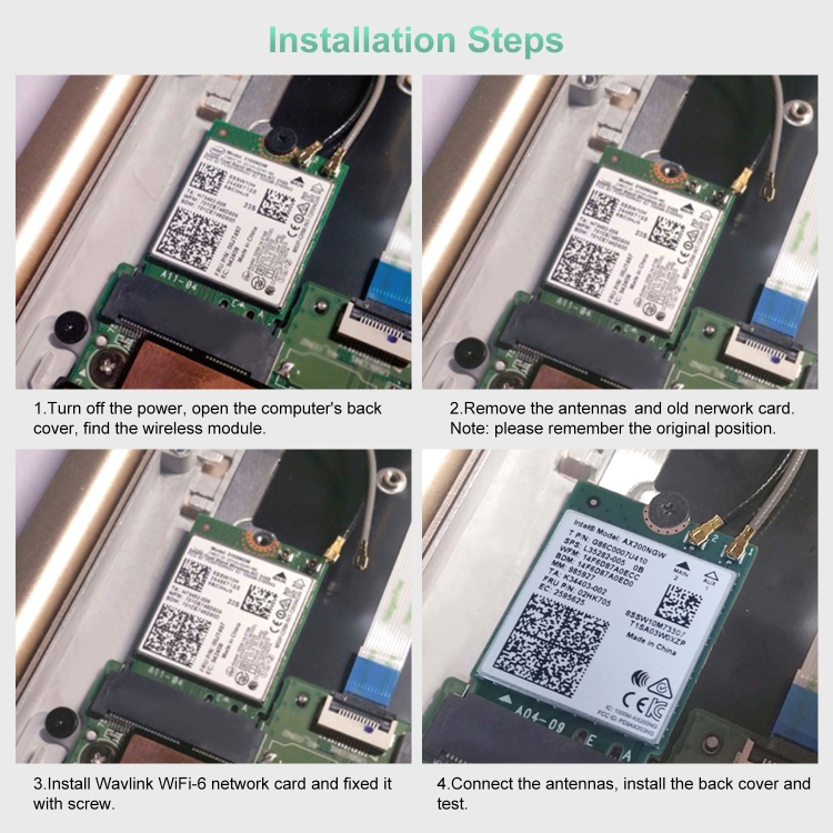 5.Compatibility: Perfect for replacing old WiFi 5 or WiFi 4 based wireless modules, such as AC9260/AC8260/AC7265 with M.2 interface. Most suitable for laptops or desktops equipped with Intel CPUs and some newer AMD CPUs running Windows 10 64 bit (requiring driver installation through a website), such as Lenovo, HP, Dell, ASUS laptops. Lenovo T-series laptops have whitelist restrictions and are mostly incompatible