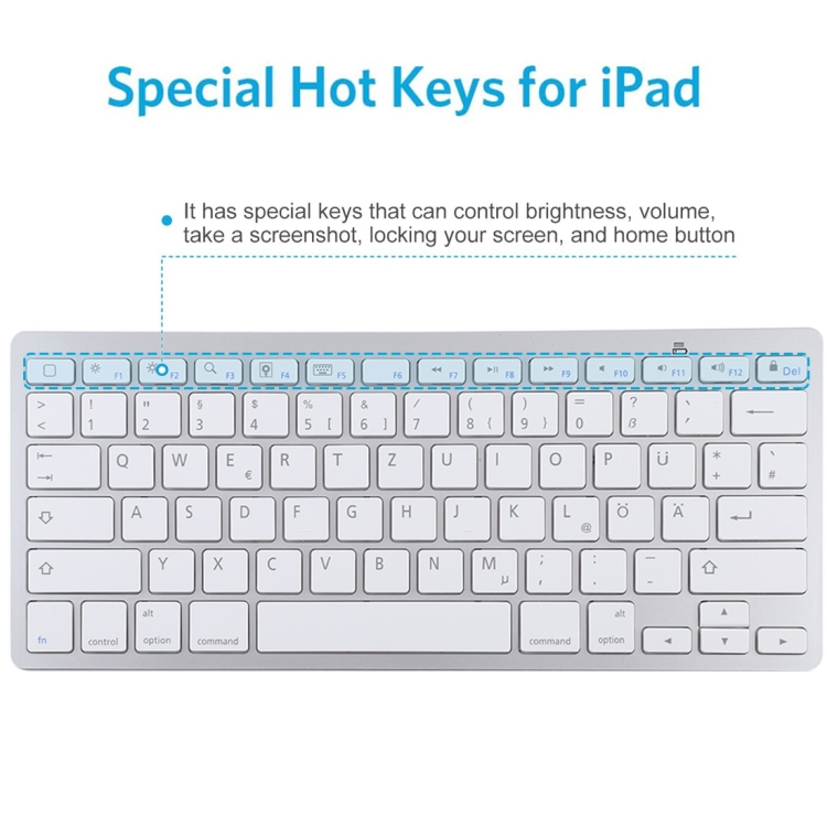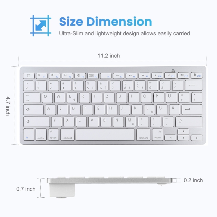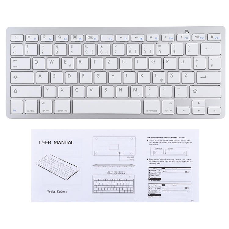WB-8022 Ultra-thin Wireless Bluetooth Keyboard for iPad, Samsung, Huawei, Xiaomi, Tablet PCs or Smartphones, German Keys