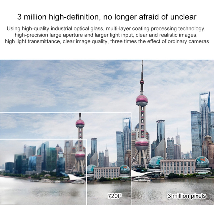 2. It adopts industrial optical glass and multi-layer coating processing technology. The high-precision large aperture has a larger amount of light, the image is vivid and vivid, the transmittance is high, and the picture quality is clear, which is three times the effect of ordinary cameras.