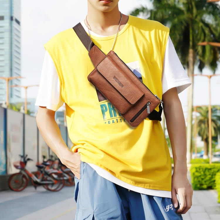 WEIXIER 9526 Men Leisure Style PU Leather Single Shoulder Crossbody Bag Waist Pack
