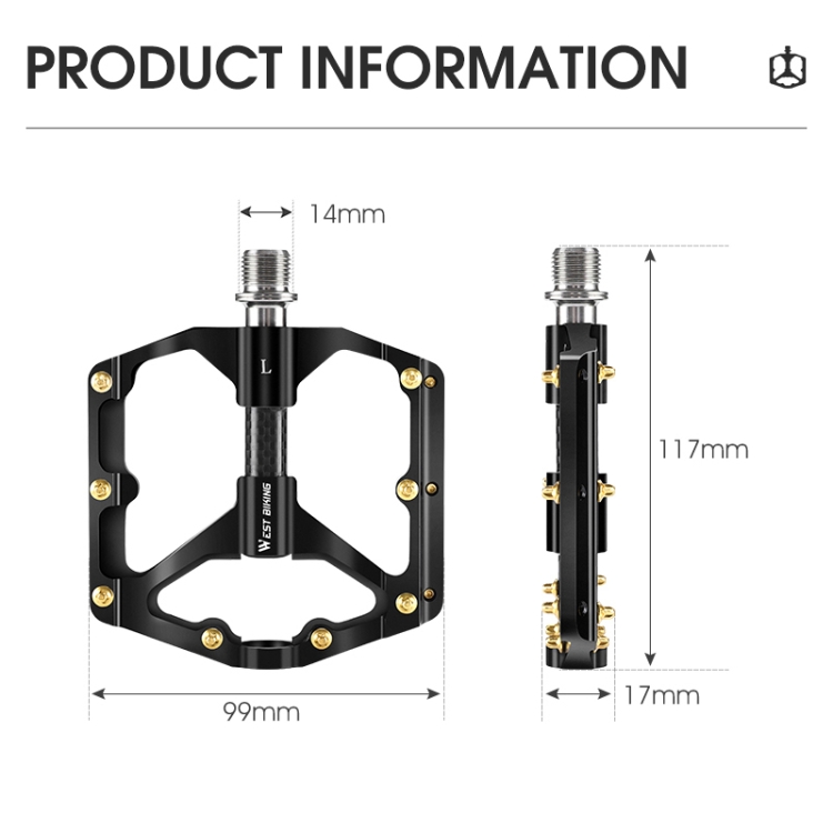 WEST BIKING 3 Bearings Ultralight Carbon Fiber Bushing Mountain Bike Pedal