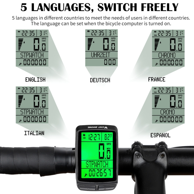 WEST BIKING 5 Languages Bicycle Waterproof Backlight Multifunction Wireless Odometer Speedometer