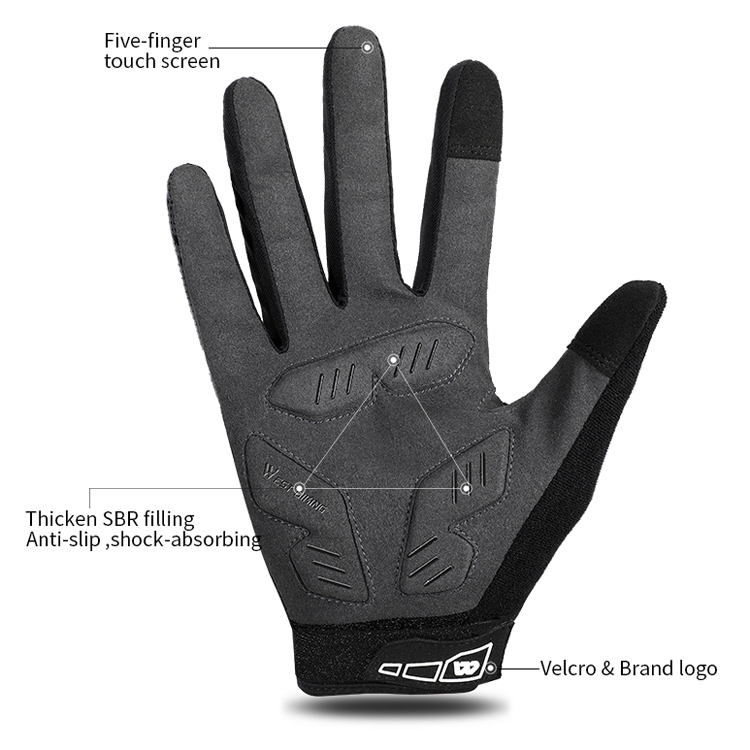 WEST BIKING YP0211207 Riding Full Finger Gloves Road Bike Mountain Bike Locomotive Shock Absorber Gloves