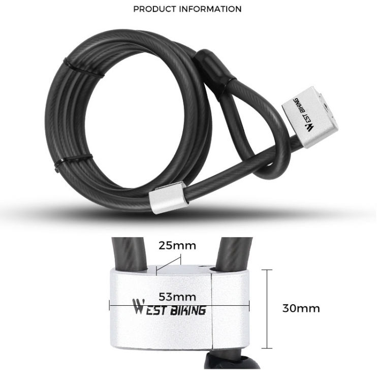 WEST BIKING YP0705066 Lengthen Steel Cable Lock Motorcycle Mountain Bike Bicycle Anti-Theft Lock