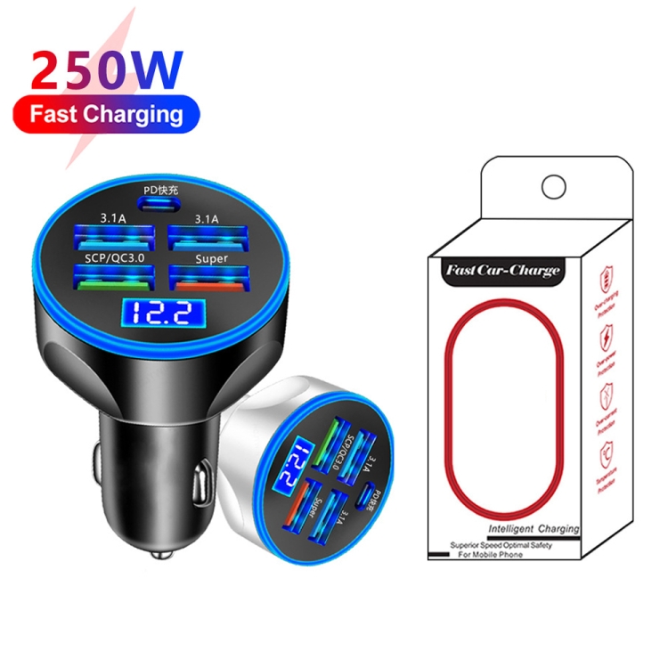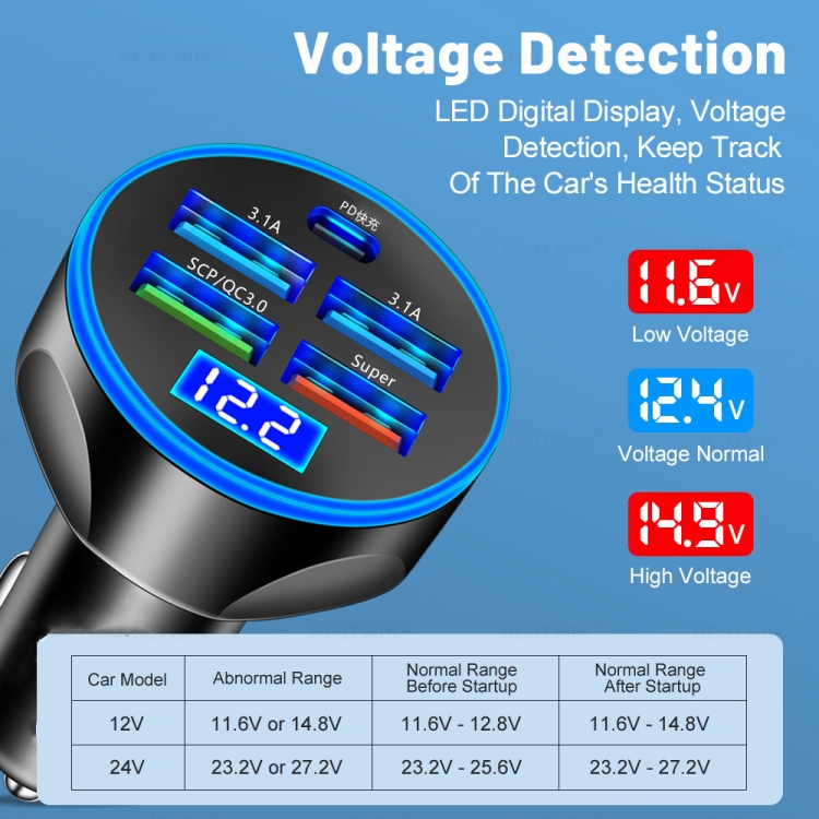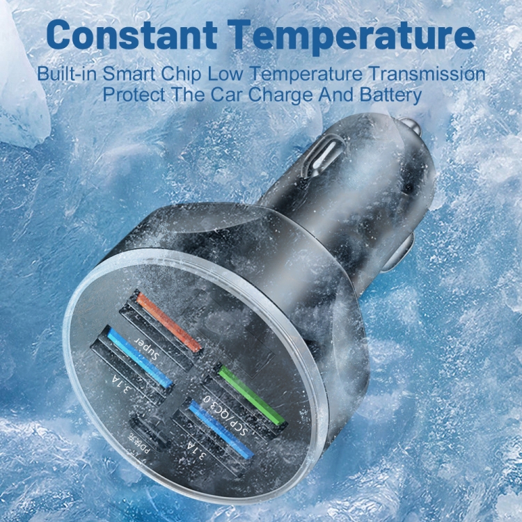 WGS-G37 5 in 1 Digital Display Super Fast Charging Car Charger with Voltmeter