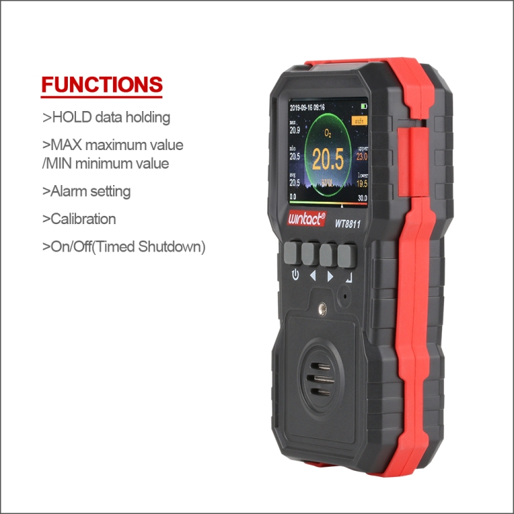 WINTACT WT8811 Compoud Gas Monitor LCD Display Rechargeable Multifunction 4 in1 Combustible O2 H2S CO Gas Sensor Sound-light Vibration Alarm