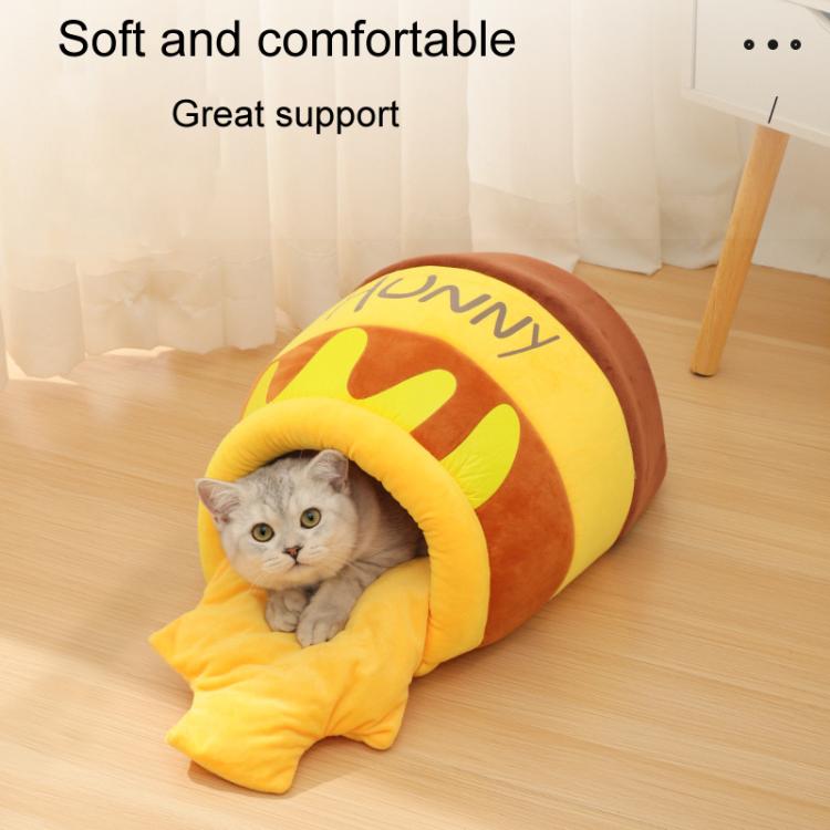Winter Cute Semi-Closed Cats And Dogs Kennel Thickened Honey Pot Pet Bed