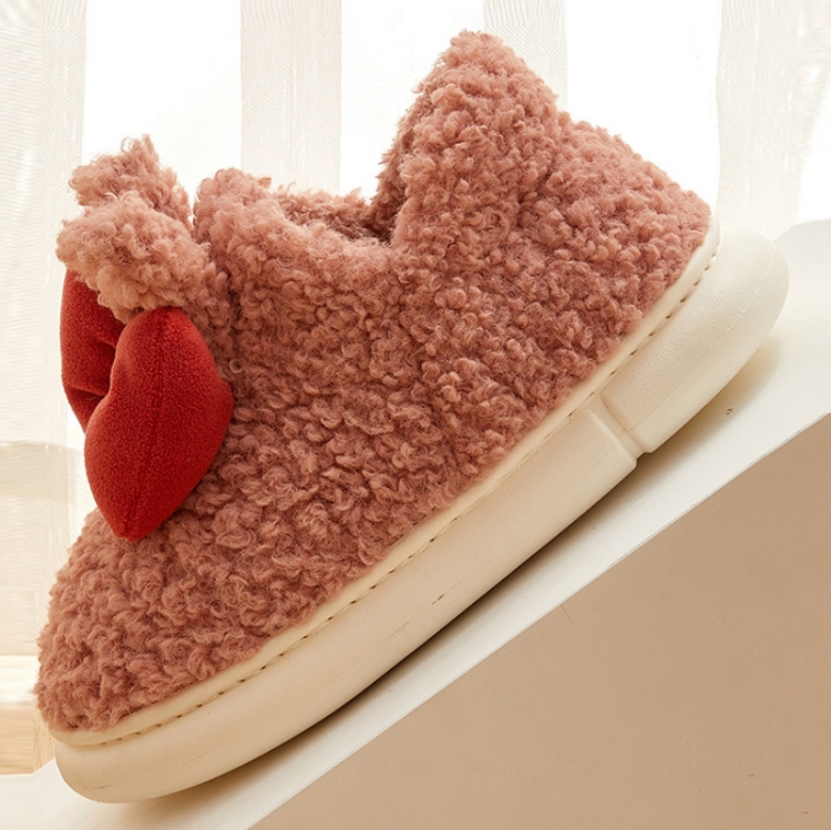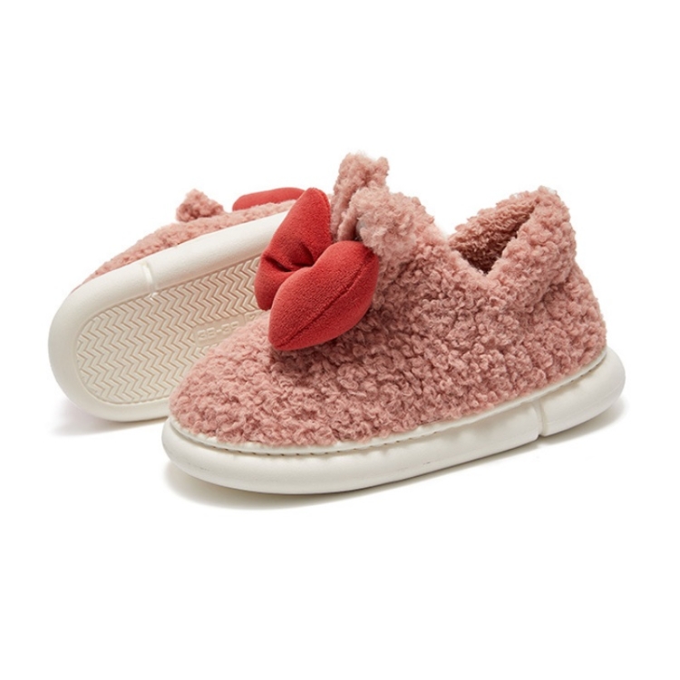 Winter Indoor Thick-Soled Rabbit Ear Bowknot Warm Cotton Slippers