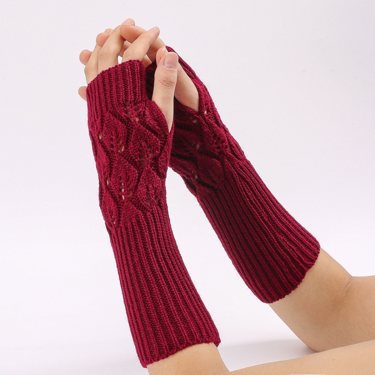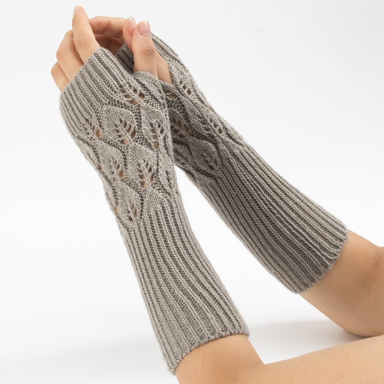Winter Men and Women Knitted Jacquard Leaves Cycling Warm Fingerless Wool Gloves