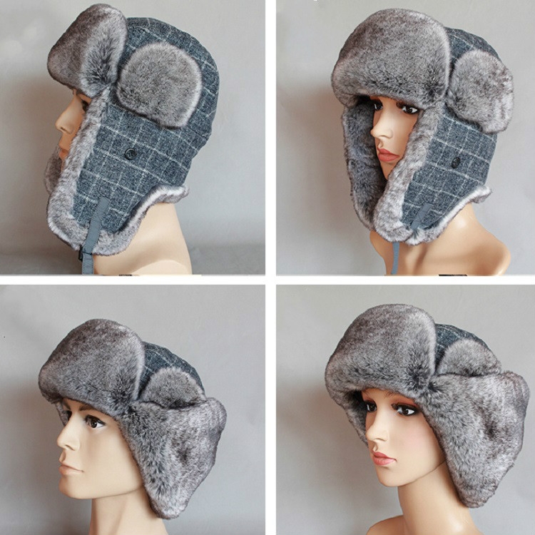 Winter Outdoor Warm Checkered Pattern Bomber Hat Flight Cap