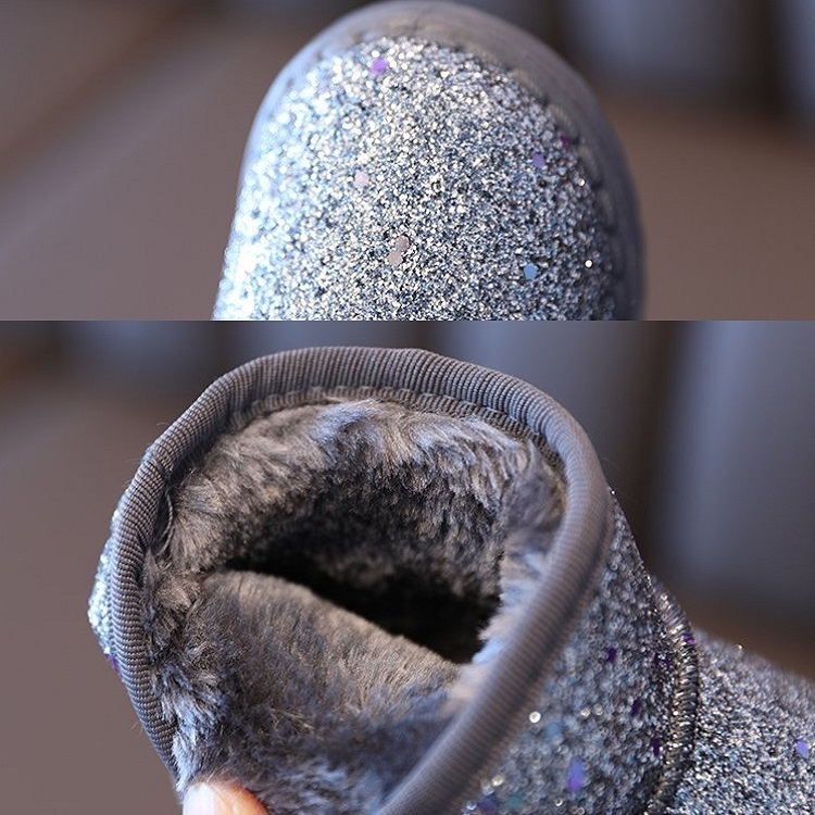 1. Upper material: sequined fabric, insole material: artificial wool, sole material: rubber