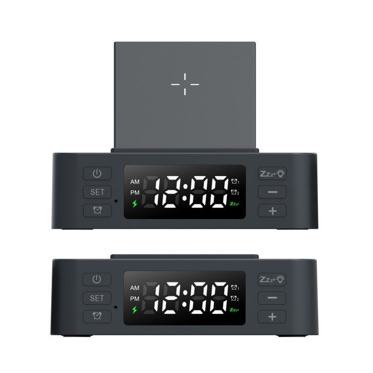 Wireless Charger Alarm Clock Foldable Mobile Stand With Pen Holder & Dual USB +1 Type-C Output