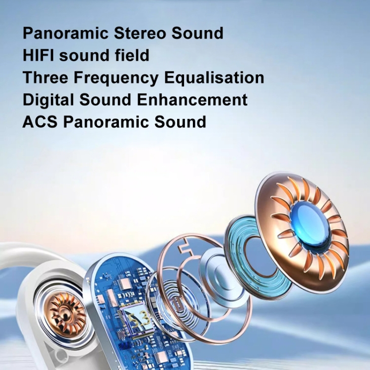 2. Panoramic stereo sound, HIFI sound field, three-frequency equalisation, digital sound enhancement, ACS panoramic sound effect