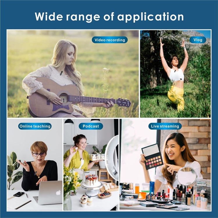 1. Record voice clearly; High-sensitivity microphone and omnidirectional sound reception, The wireless Mic can record voice clearly no matter the surrounding environment