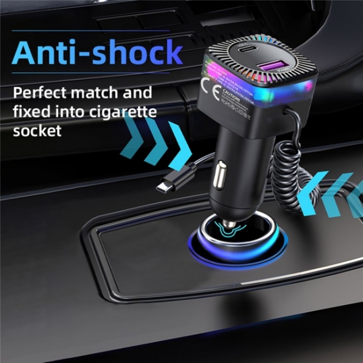 With Spring Type-C Cable USB + Type-C PD 30W Phone Fast Charging Adapter Car Charger