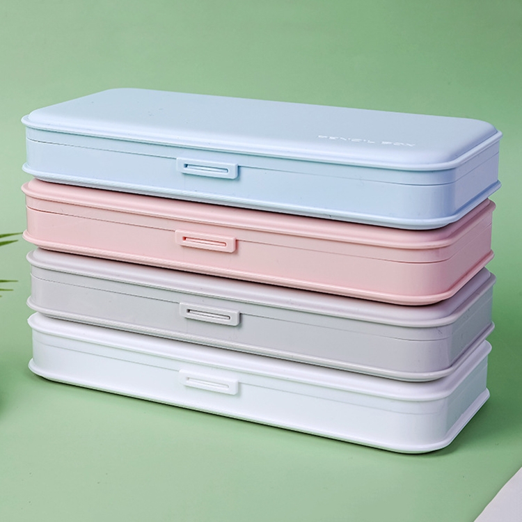 WJ-WJH-2 Plastic Compartment Large-capacity Shatter-resistant Flip-top Stationery Box, Pink, Blue, White, Grey