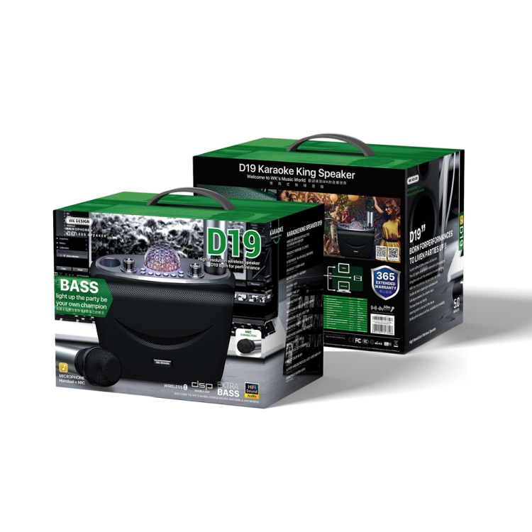 WK D19 National K Song King Wireless Bluetooth 5.0 Speaker with KTV Atmosphere Light