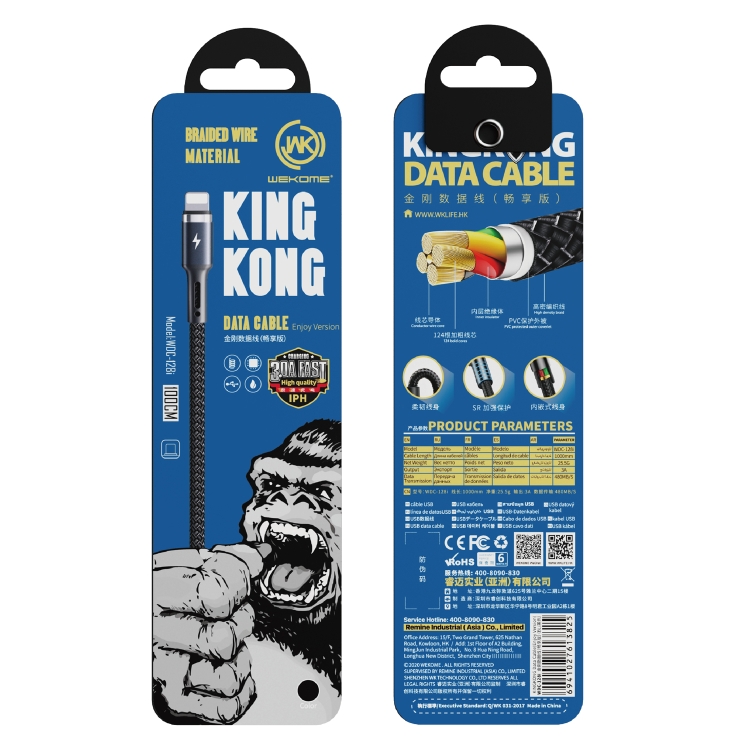 WK WDC-128 3A Type-C / USB-C Kingkong Enjoy Version Charging Data Cable, Length: 1m