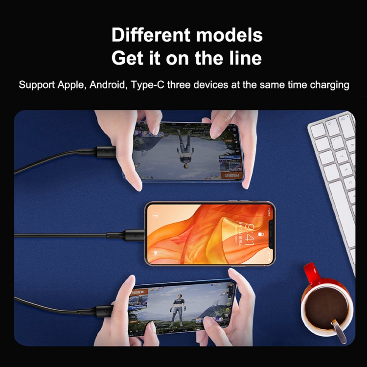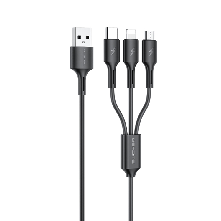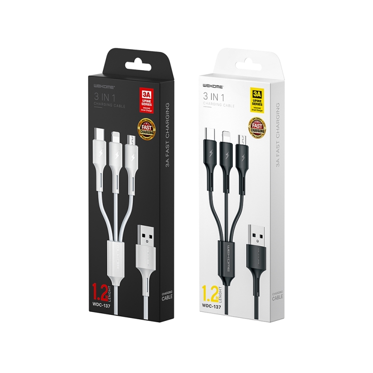 WK WDC-137 3 in 1 USB to Micro USB / 8 Pin + USB-C / Type-C 3A Fast Charing Cable