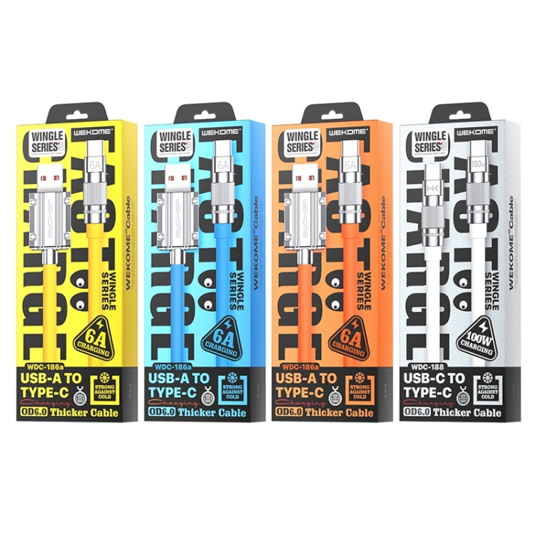 WK WDC-186 Qjie Series 6A USB to USB-C/Type-C Ultra-Fast Charge Data Cable, Length: 1m